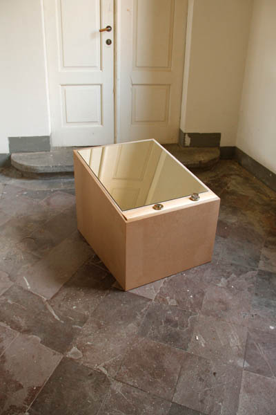 „WC-Rosettengarnitur Edelstahl“ ,2017, 60cm x 70cm x 60cm, MDF, Kiefer, WC-Rosettengarnitur Edelstahl, Spiegelglas