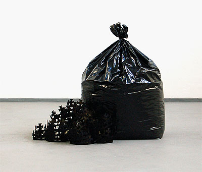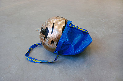 Vielleicht ja doch ... 2010, Diskokugel, Acryllack, Plastiktragetasche, ca. 30 x 35 x 55 cm