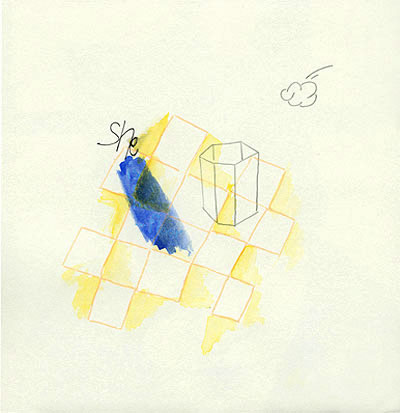 o.T., 2009, Farbstift, Tip-Ex, Aquarellfarbe, Bleistift, Papier, je 20 x 20 cm
