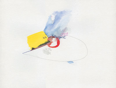 o.T., 2009, Farbstift, Bleistift und Aquarellfarbe auf Papier, 24 x 31,6 cm